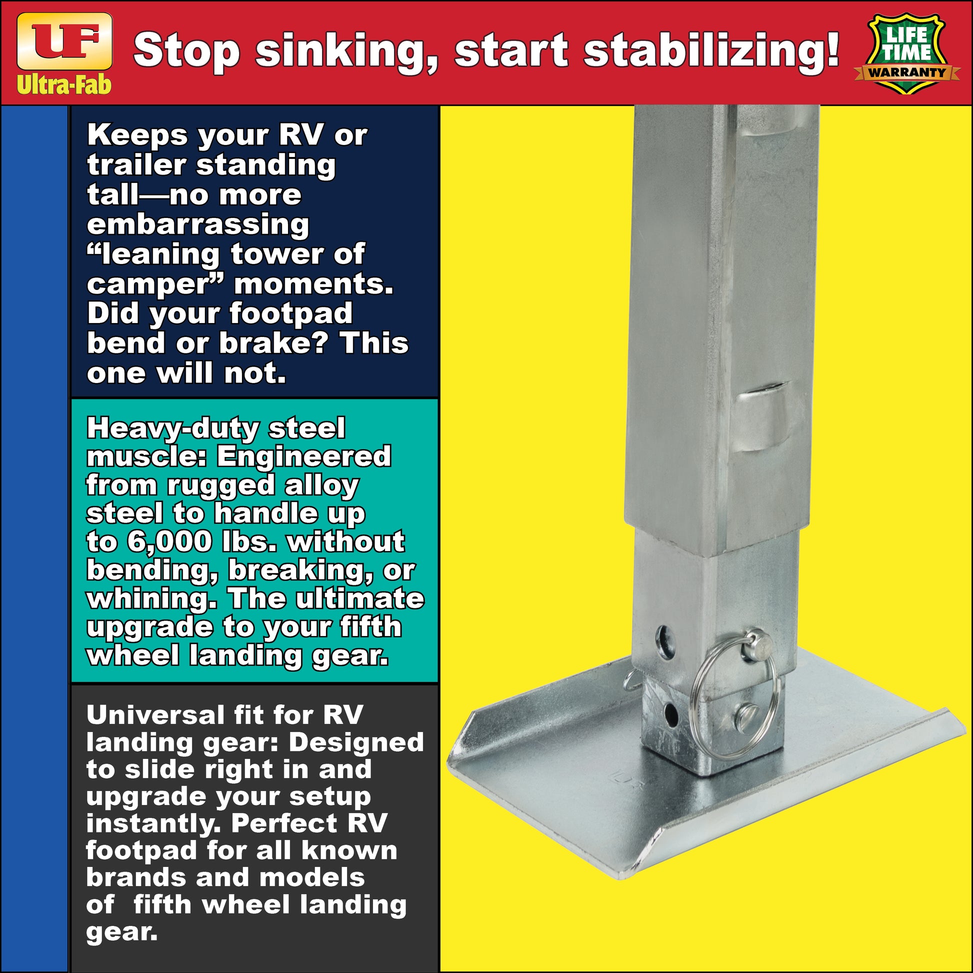 - Big footprint, bigger confidence: Spreads weight evenly across soft ground, preventing sinking and giving your rig rock-solid confidence. This footpad is like giving your trailer “big shoes”—and big shoes mean no more sinking.