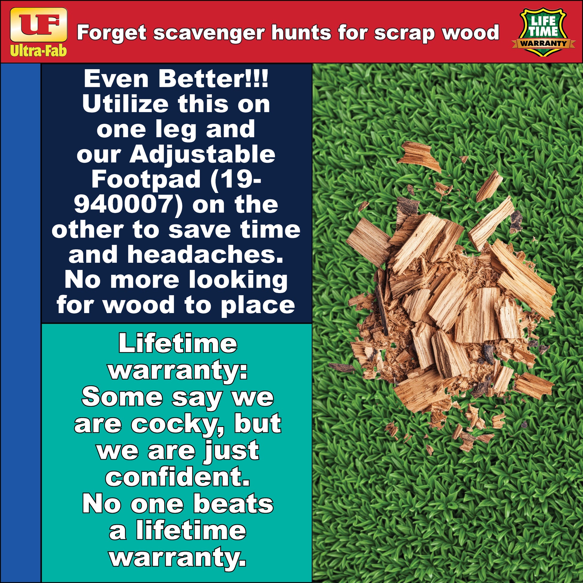 - Even Better!!! Utilize this on one leg and our Adjustable Footpad (19-940007) on the other to save time and headaches. No more looking for wood to place under one of the legs because it didn’t hit the ground.