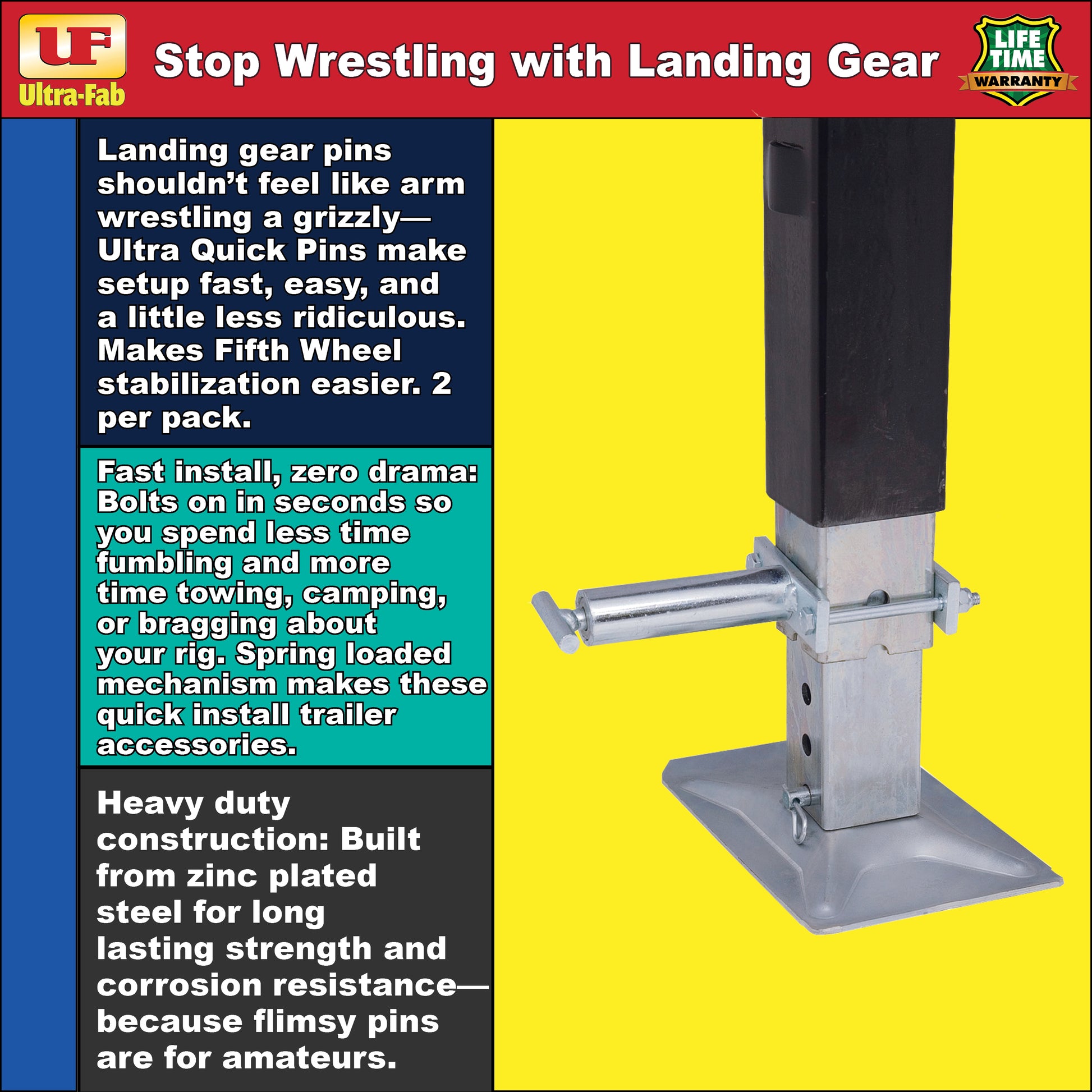 - Easy Setup, No Wrestling Match: Stop arm‑wrestling your landing gear pins. Ultra Quick Pins make fifth wheel stabilization fast, easy, and a little less ridiculous. Includes 2 pins per pack.
