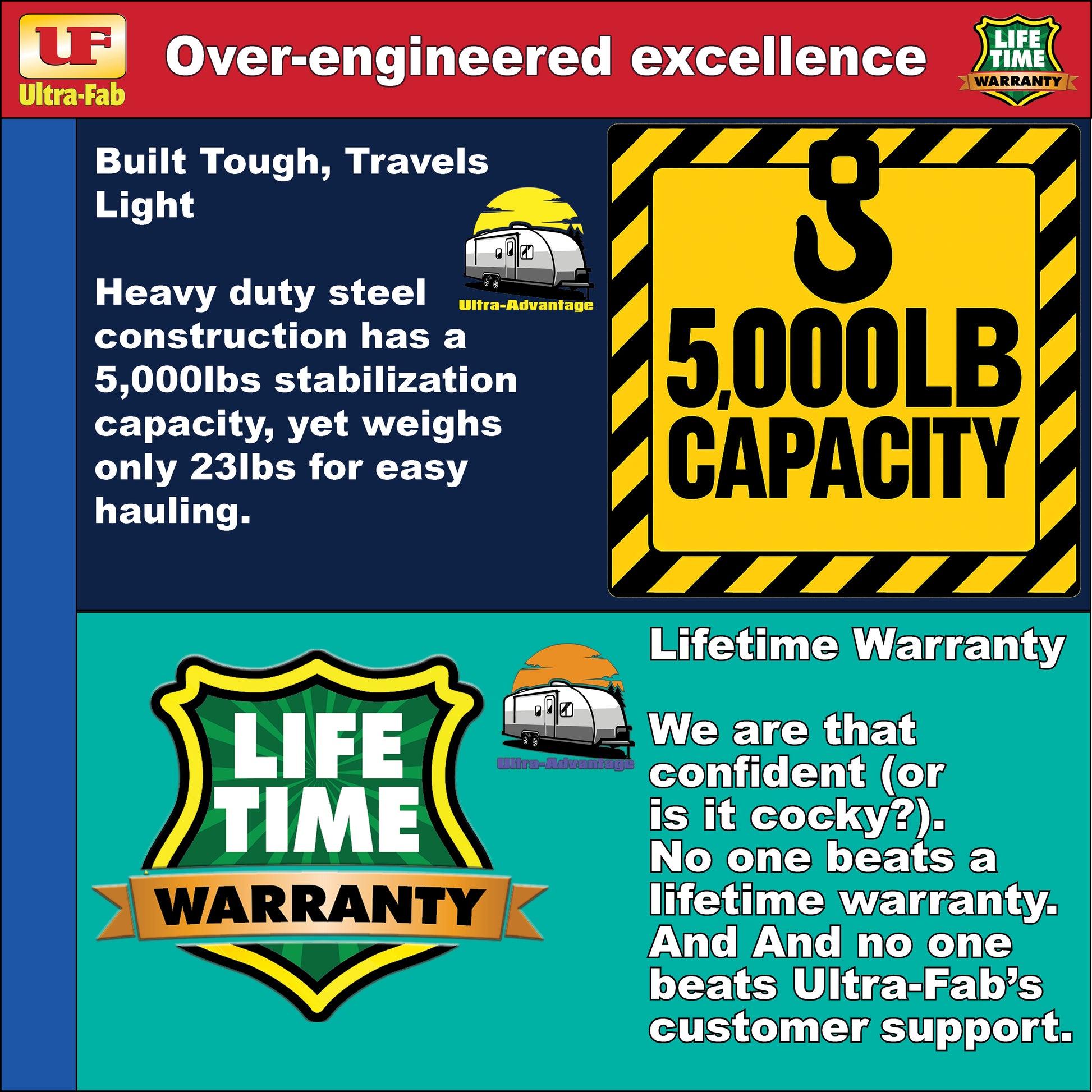 Lifetime Warranty: We are that confident (or is it cocky?). No one beats a lifetime warranty. And no one beats Ultra-Fab’s customer support.