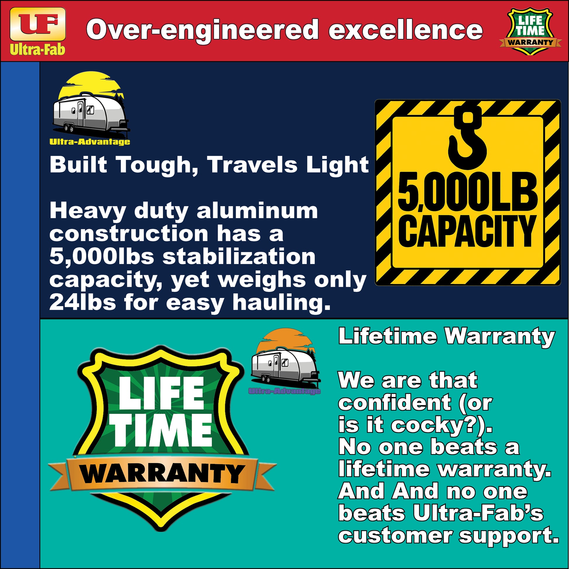 - Heavy-Duty Yet Lightweight: Delivers up to 5,000lbs of stabilizing power while weighing only 24lbs—strong enough to secure your rig, light enough to set up without breaking a sweat.
