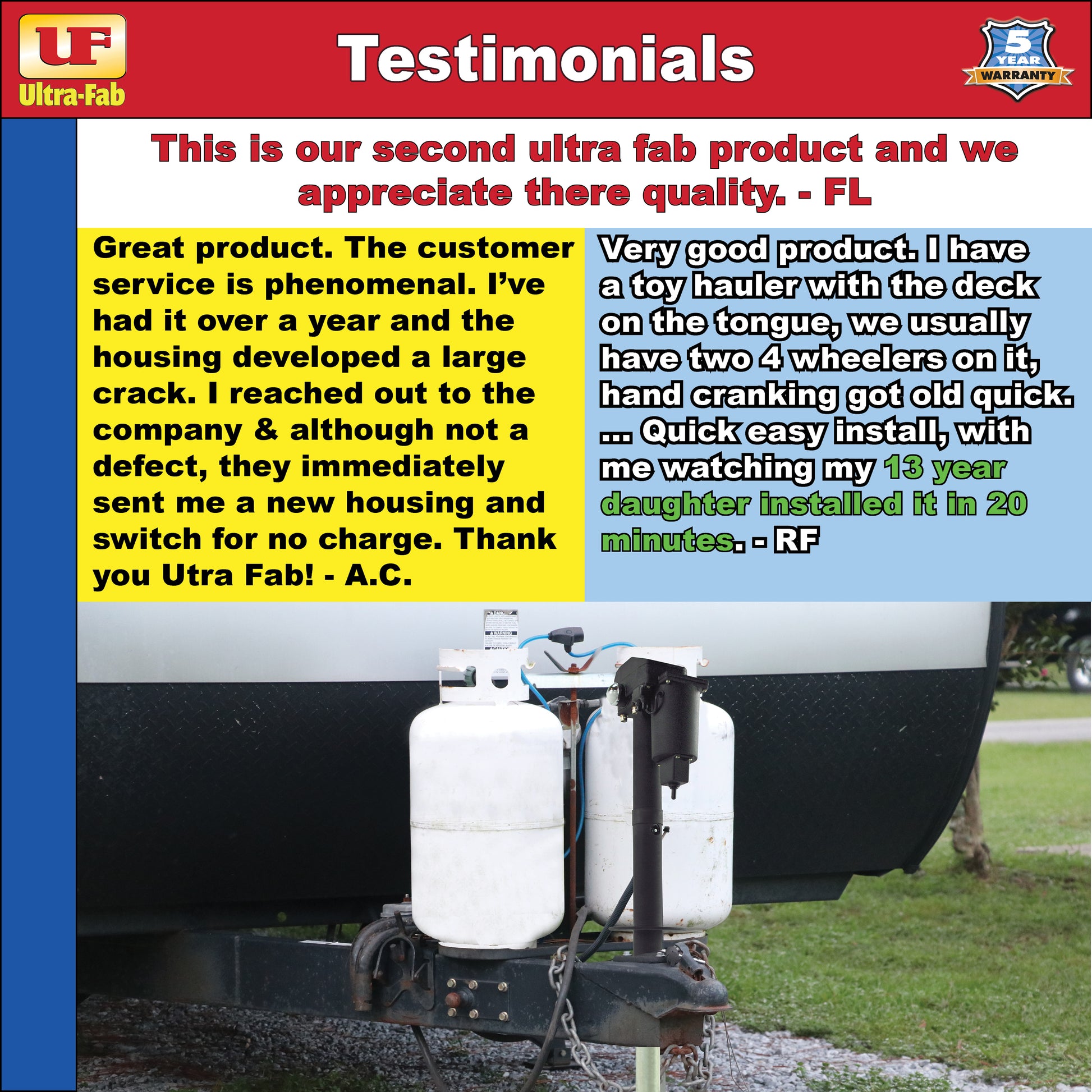 - Easy Install + Longest Warranty – Simple bolt-on installation using existing A-frame holes—no welding, no drama. Backed by a 5-year warranty (longer than most people keep their trailers). No one has a longer warranty except our Phoenix Series jacks.