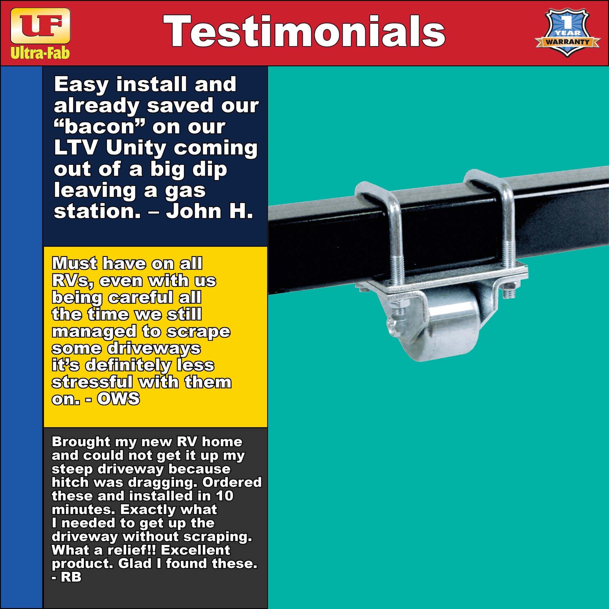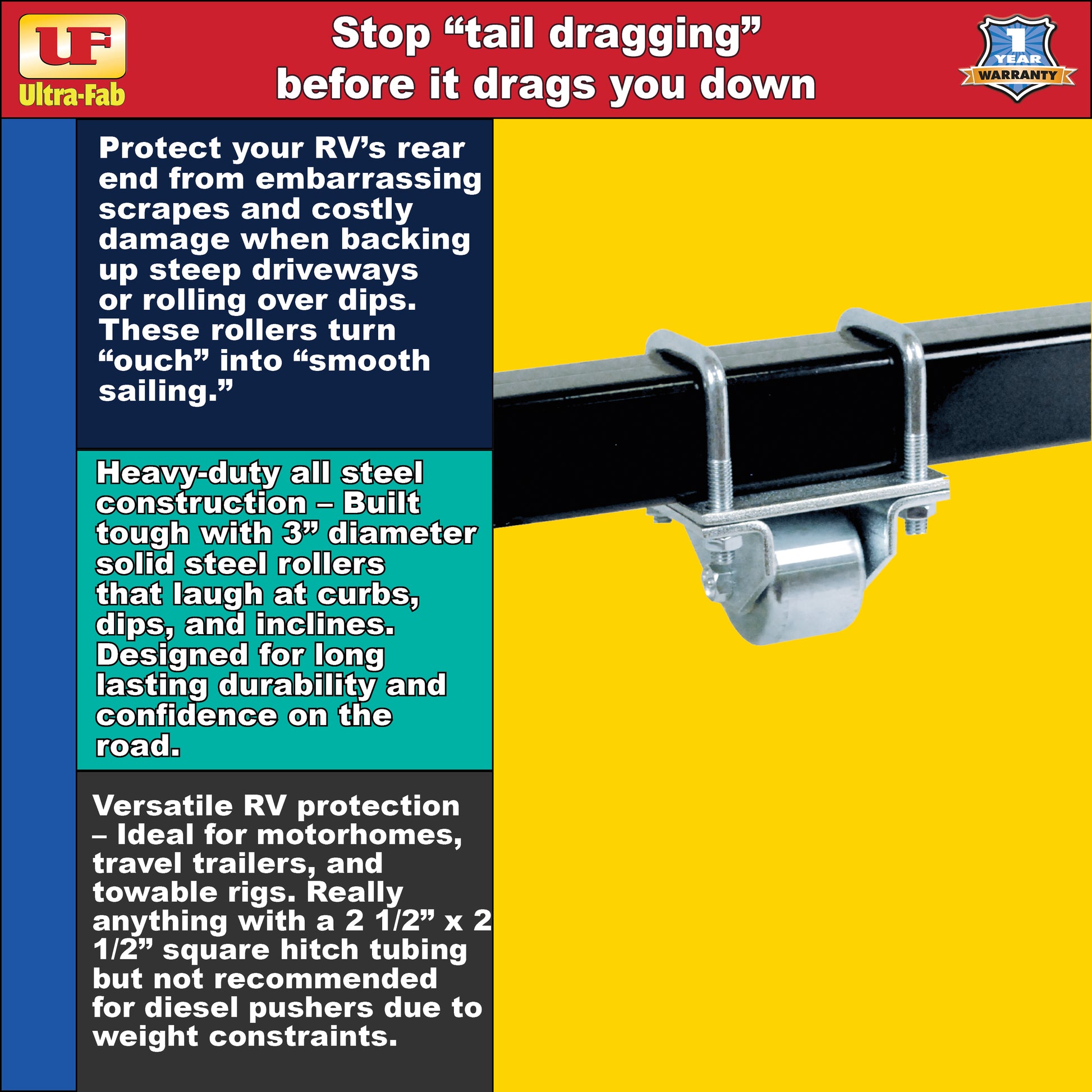 - Stop “tail dragging” before it drags you down – Protect your RV’s rear end from scrapes, dents, and costly damage when backing up steep driveways or crossing dips. These hitch rollers turn “ouch” into smooth sailing.