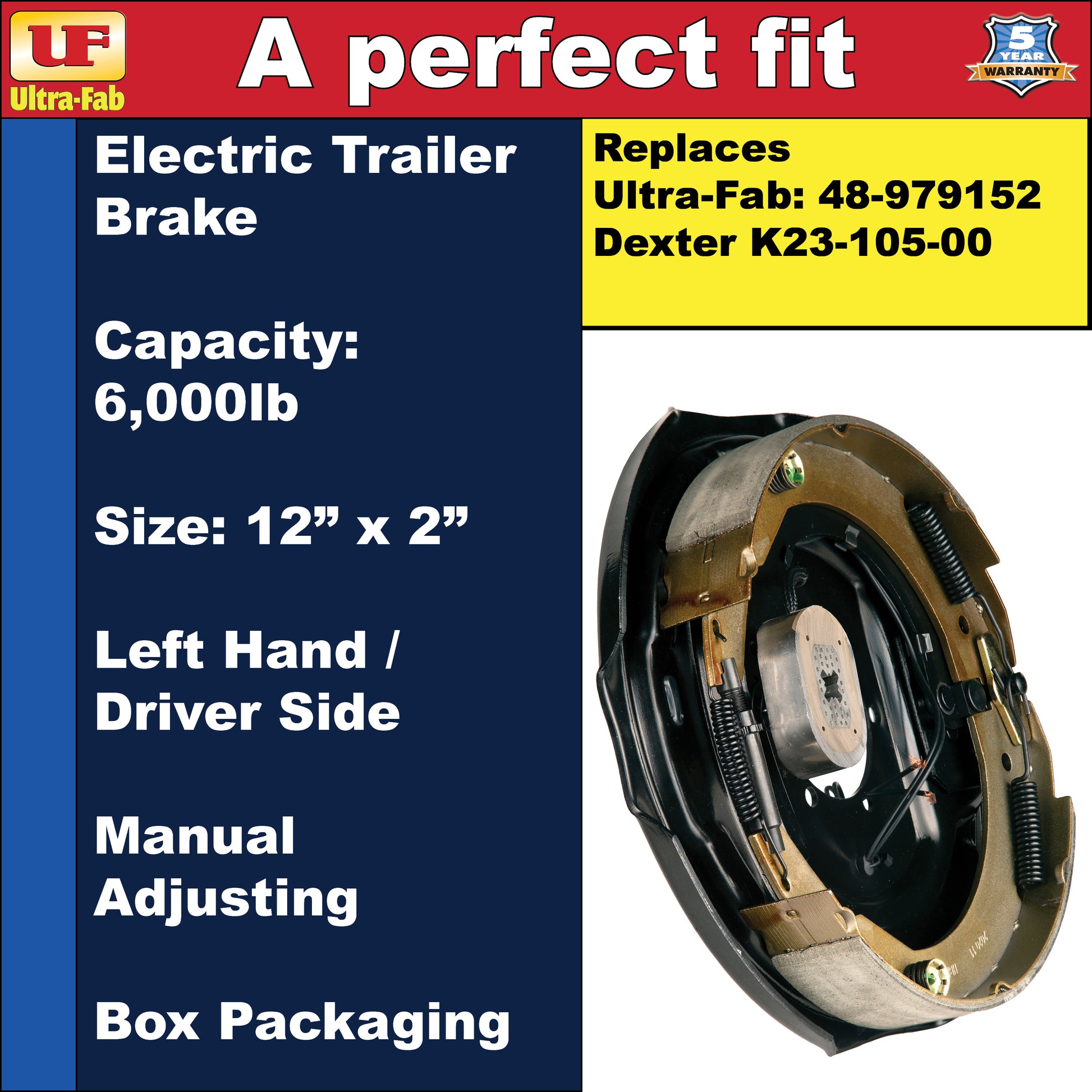 - Direct Replacement Fit: Perfect replacement manually adjustable electric trailer brake assembly for 12” x 2” brakes rated at 6,000lb. This is the left hand, driver side. Boxed packaging. Designed as a perfect OEM-style replacement for Dexter K23-105-00.